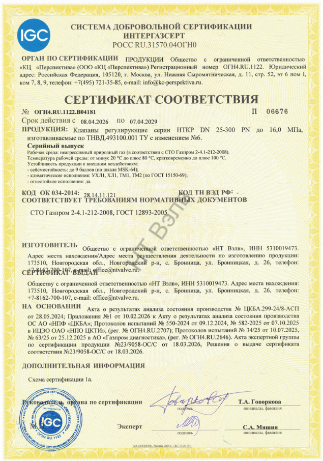Сертификат соответствия ТР ТС 032 (НТЗП,NTG, НТКС, NTB)