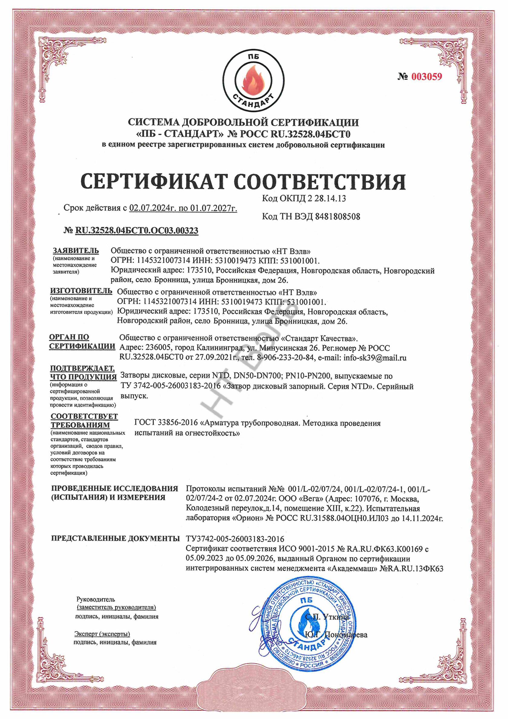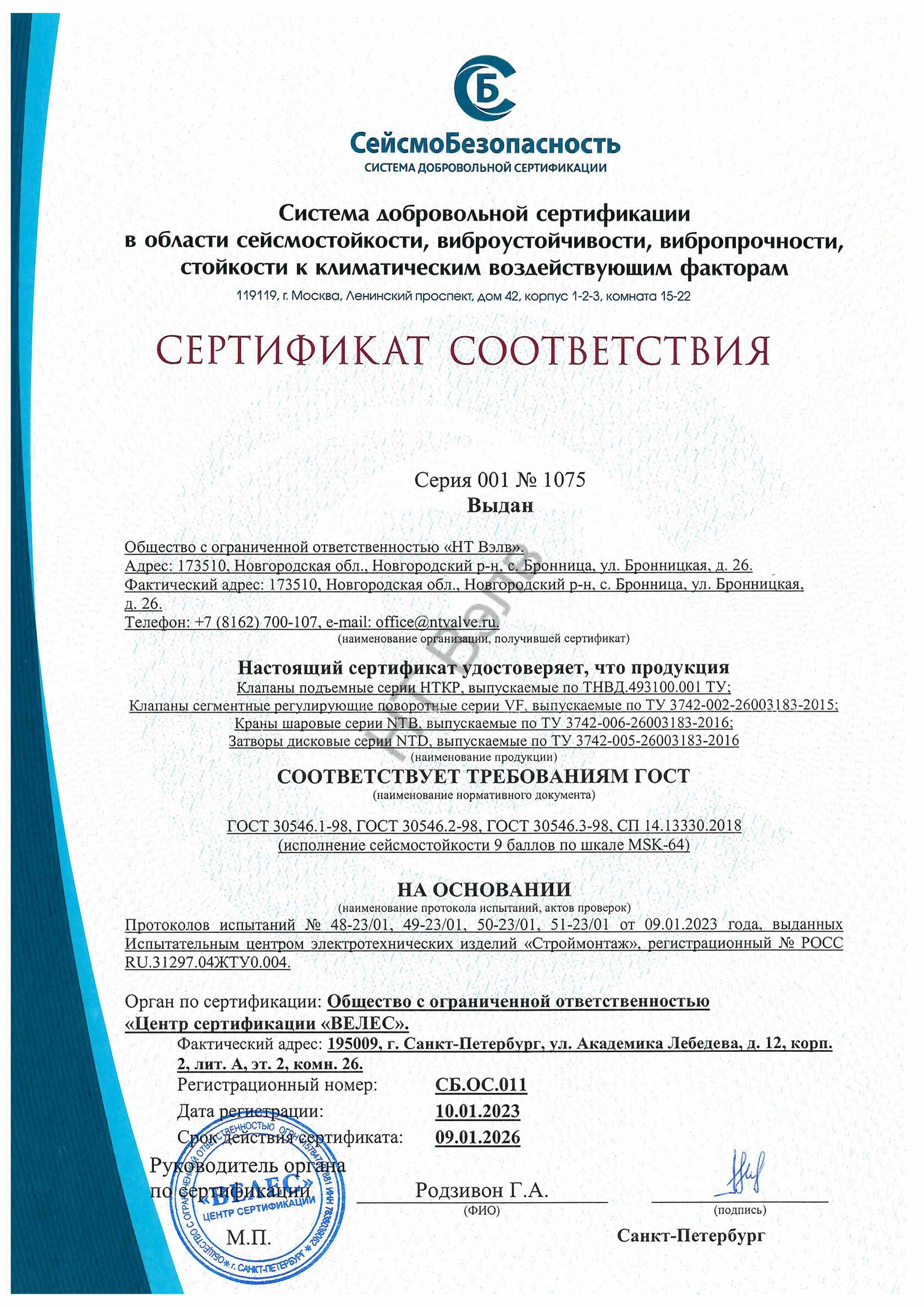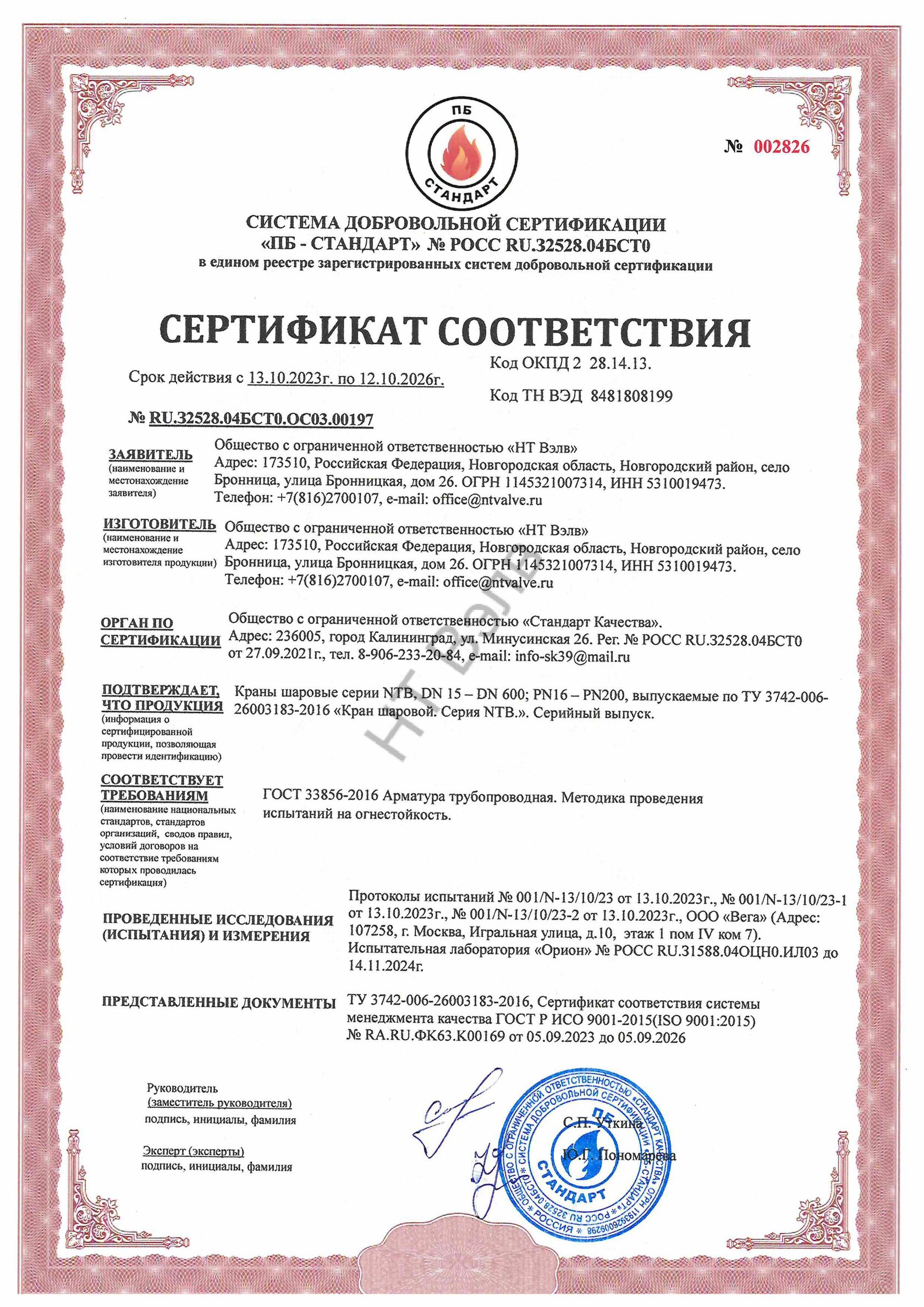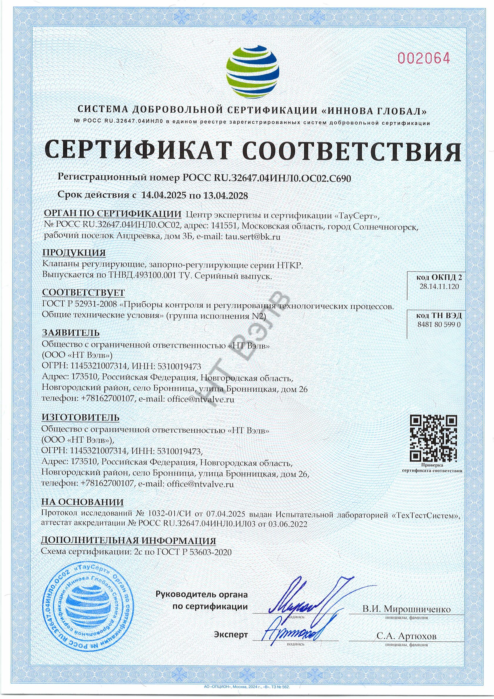 Сертификат соответствия НТКP, VF, NTB, NTD