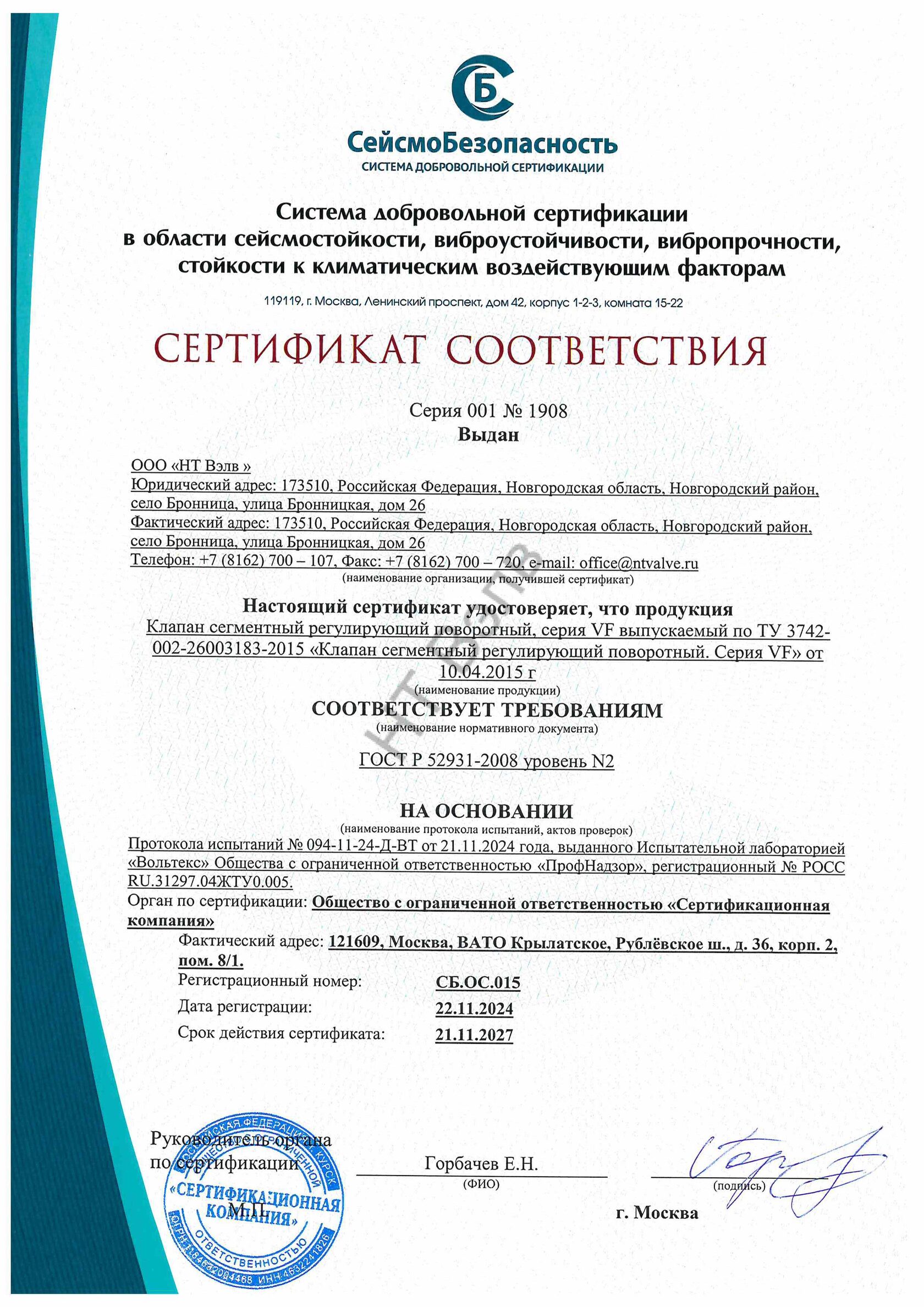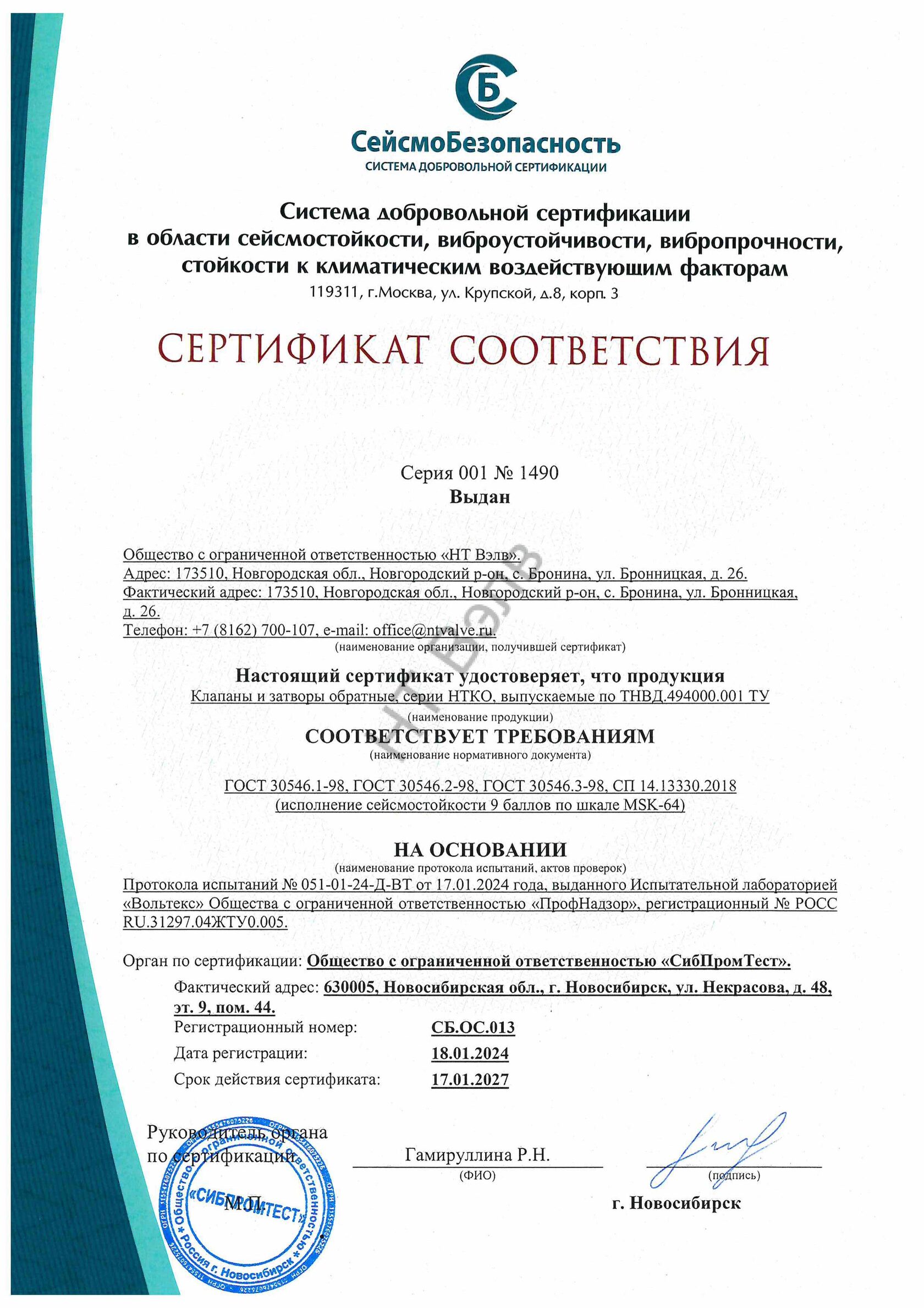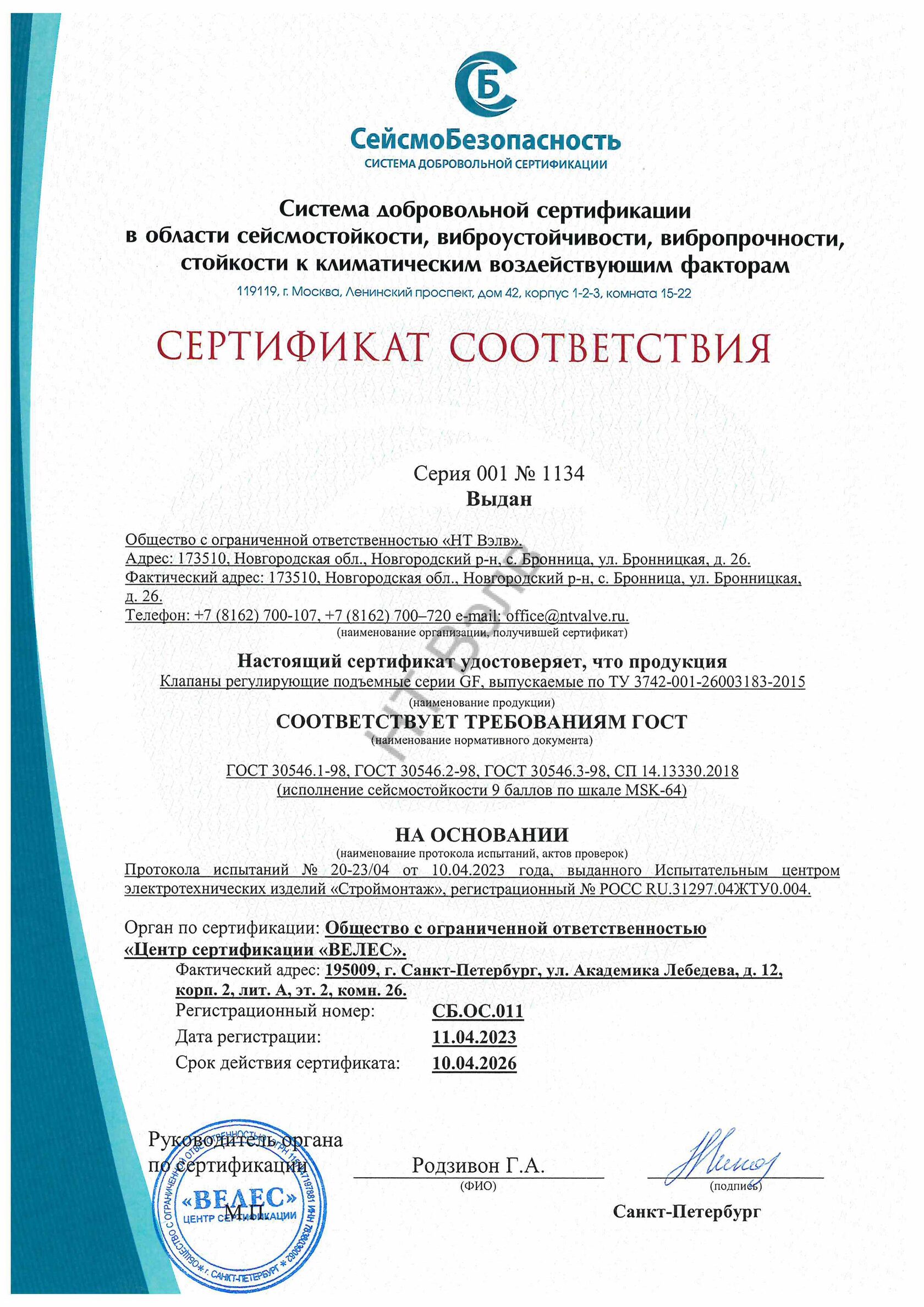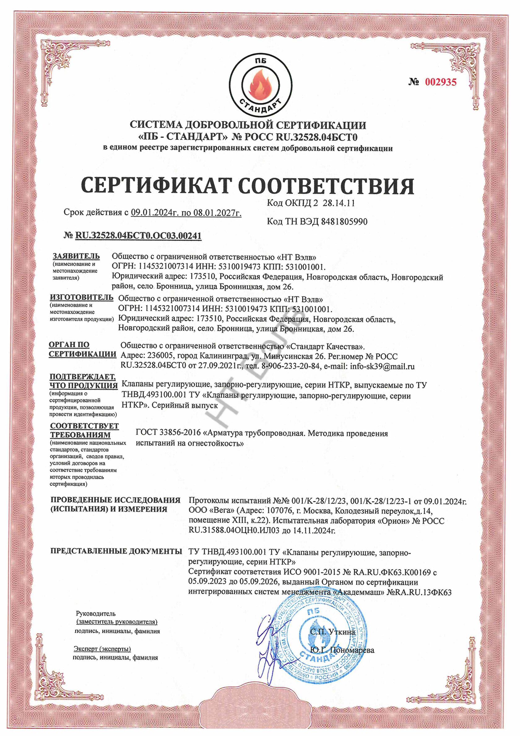 Сертификат соответствия НТКP, VF, NTB, NTD