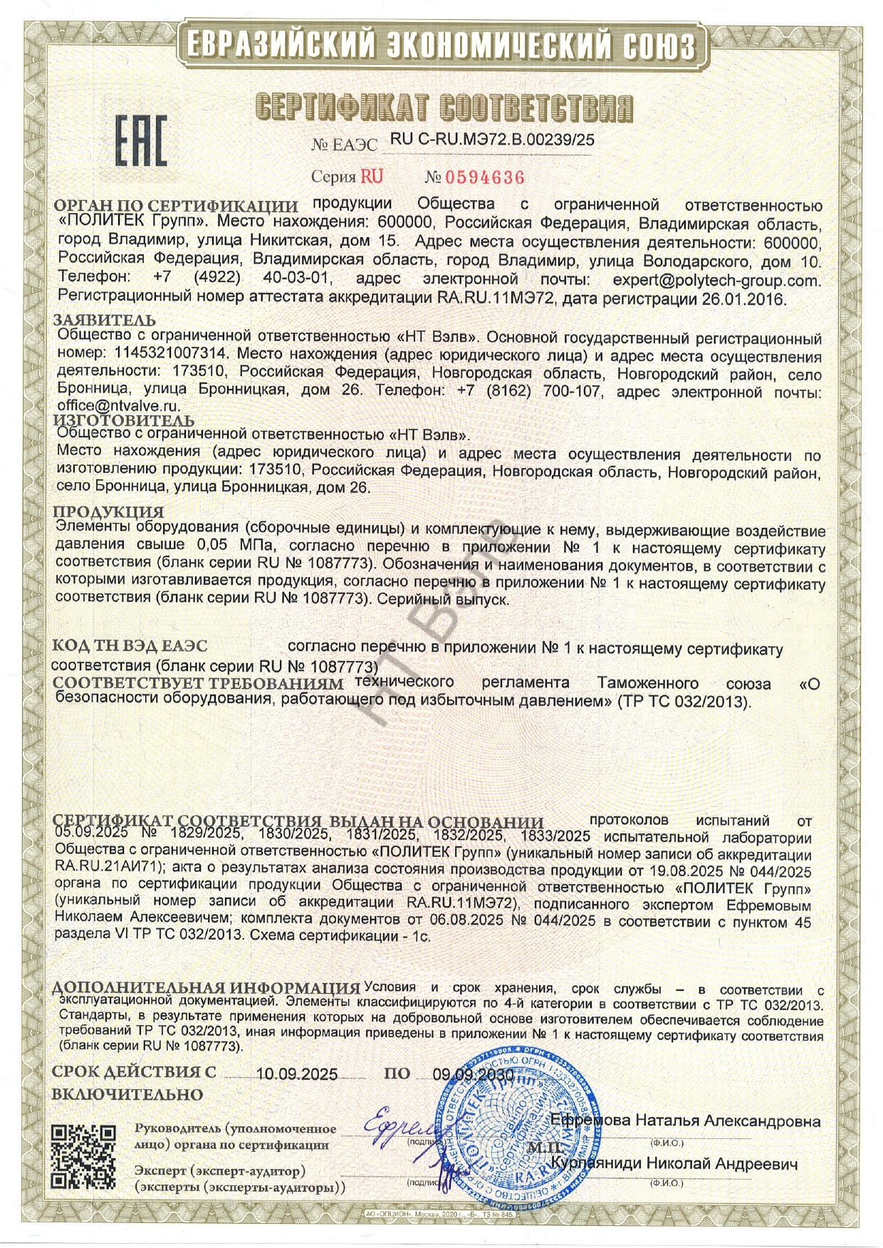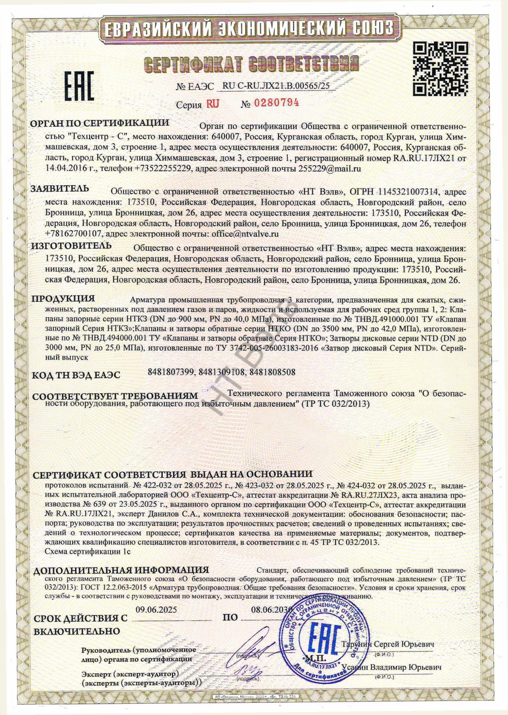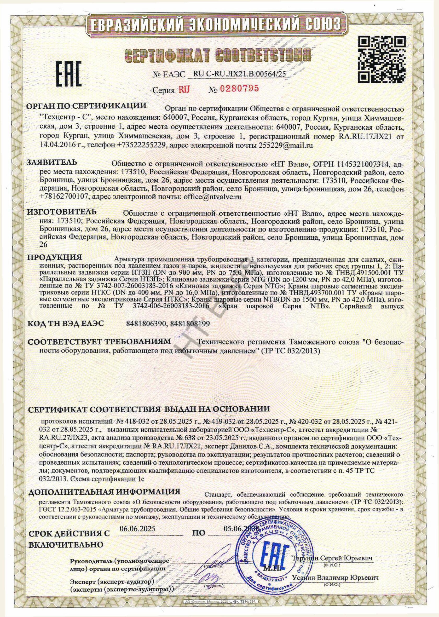 Сертификат соответствия ТР ТС 032 (НТЗП,NTG, НТКС, NTB)