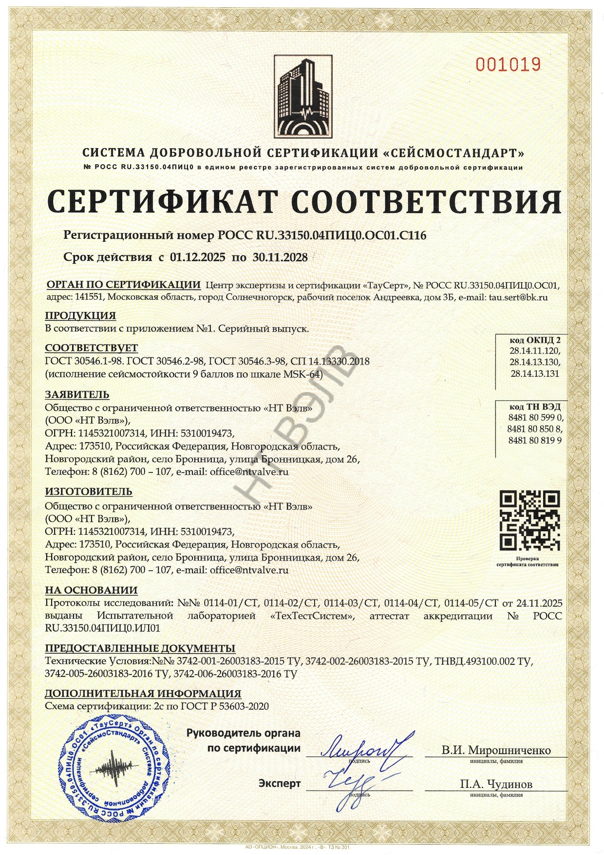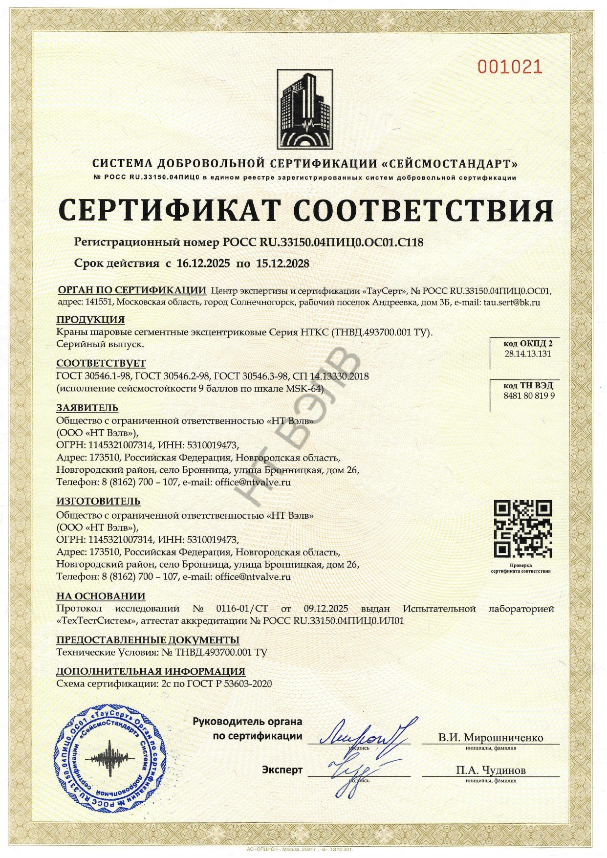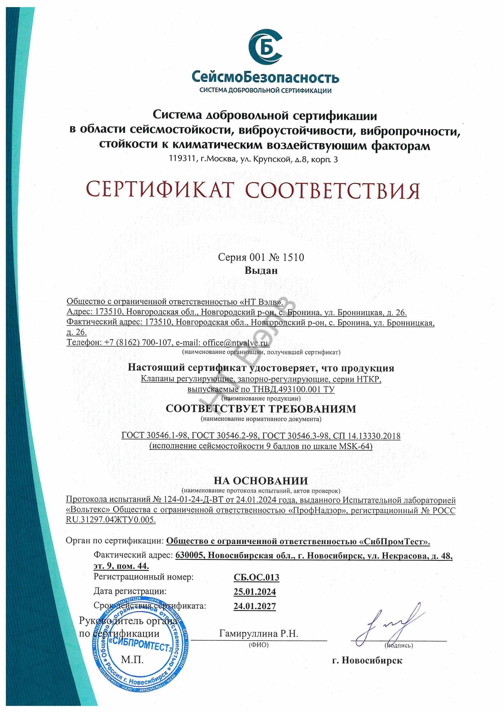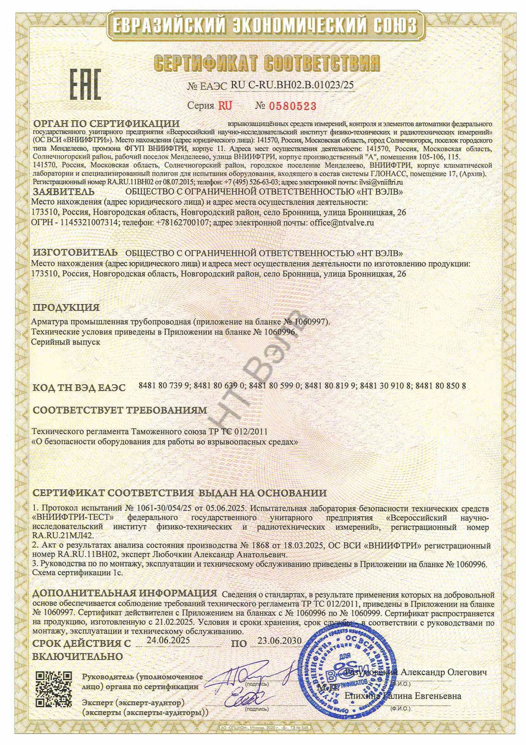 Сертификат соответствия ТР ТС 032 (НТЗП,NTG, НТКС, NTB)