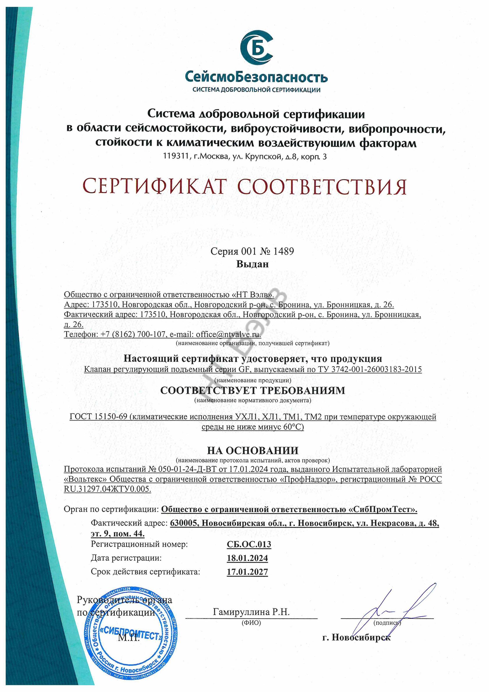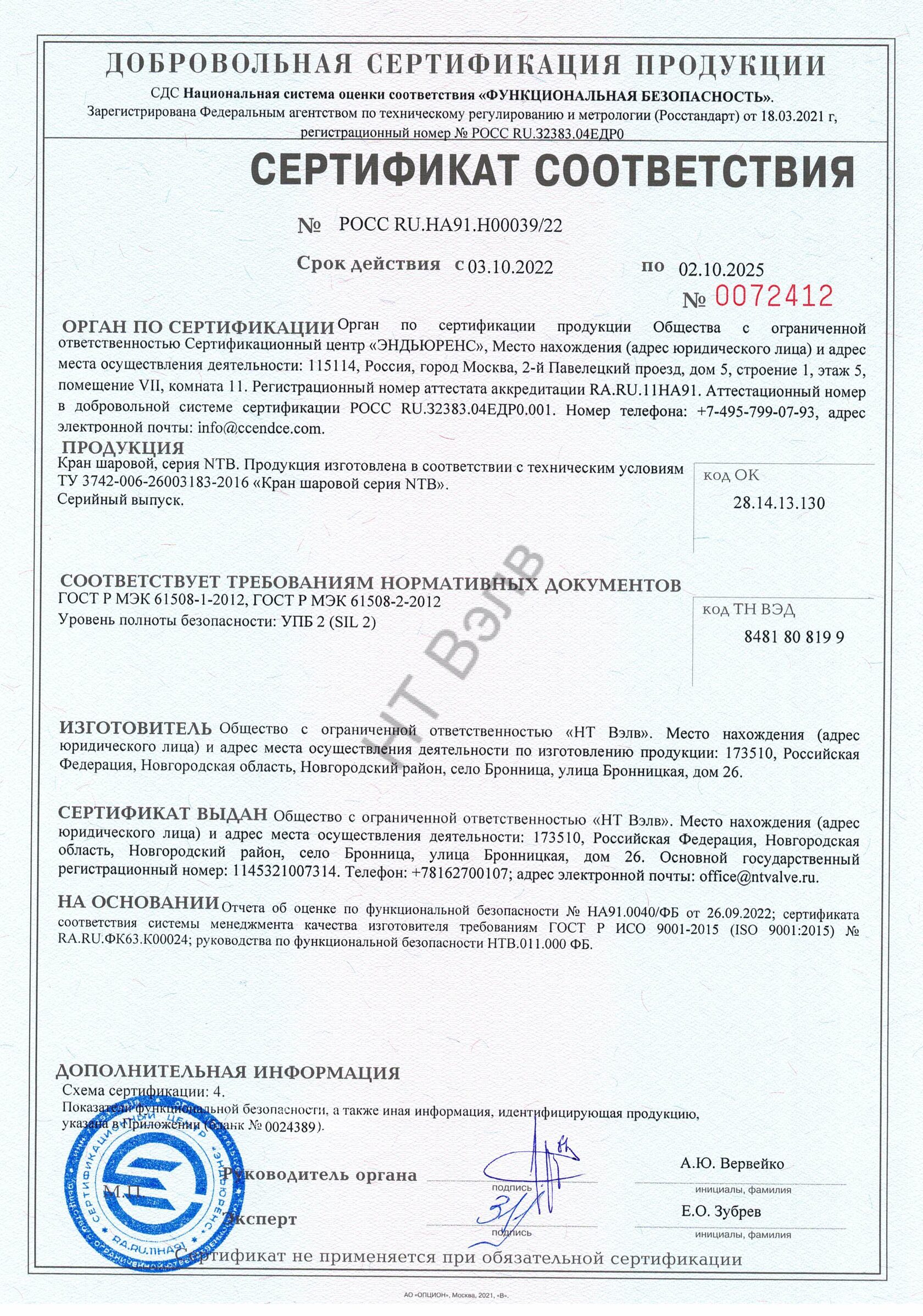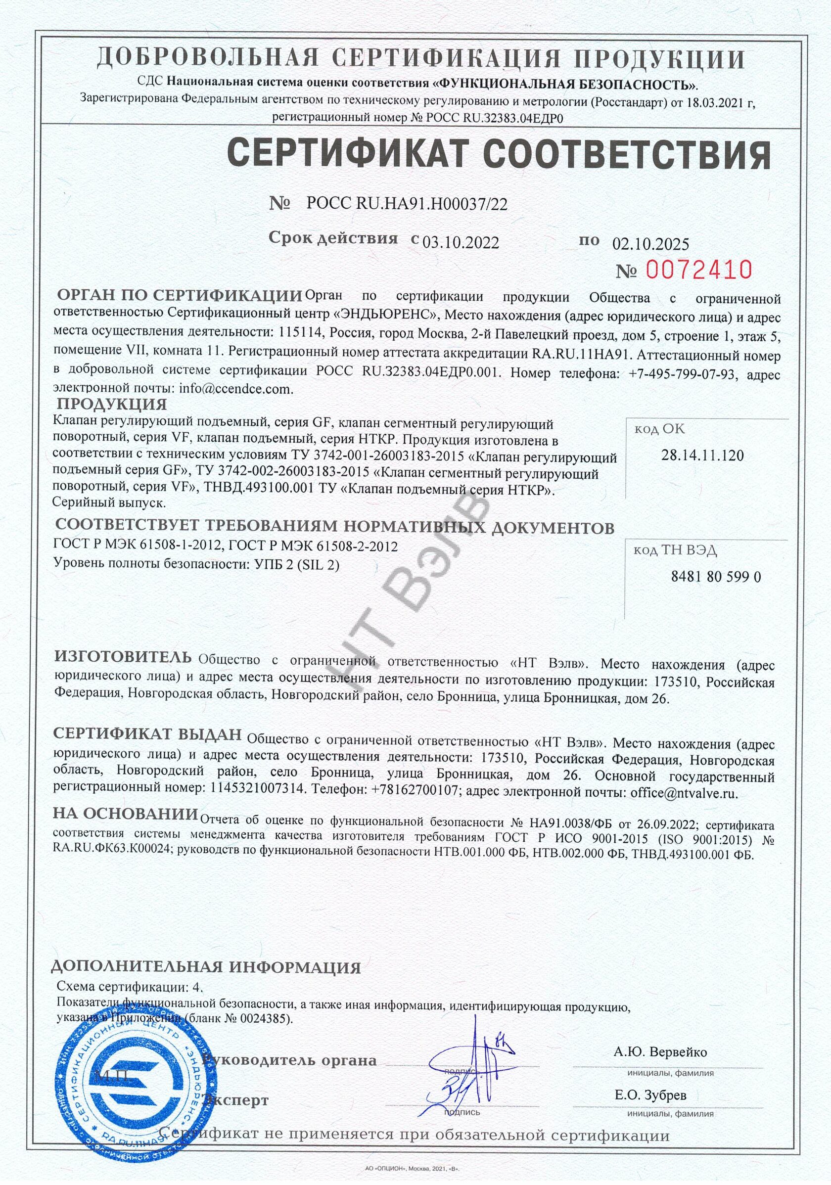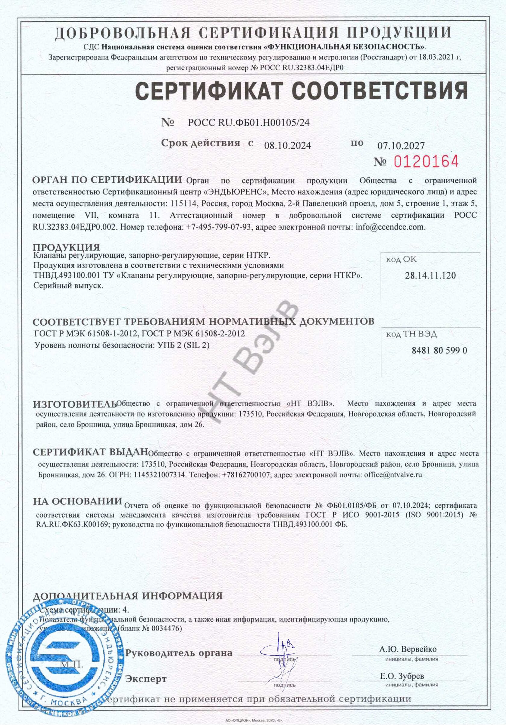 Сертификат соответствия НТКP, VF, NTB, NTD