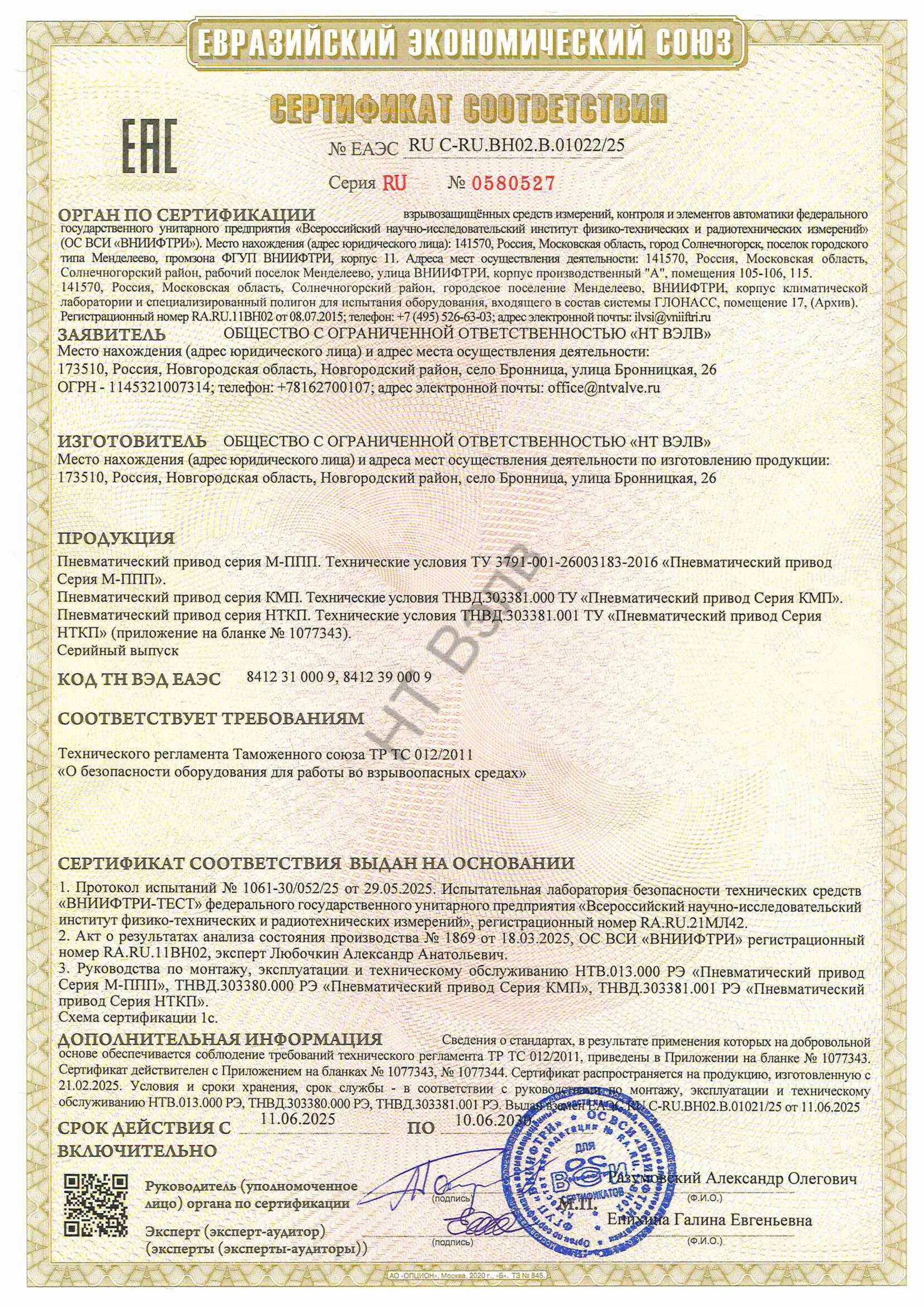 Сертификат соответствия ТР ТС 012 Приводы (М-ППП, КМП, НТКП)