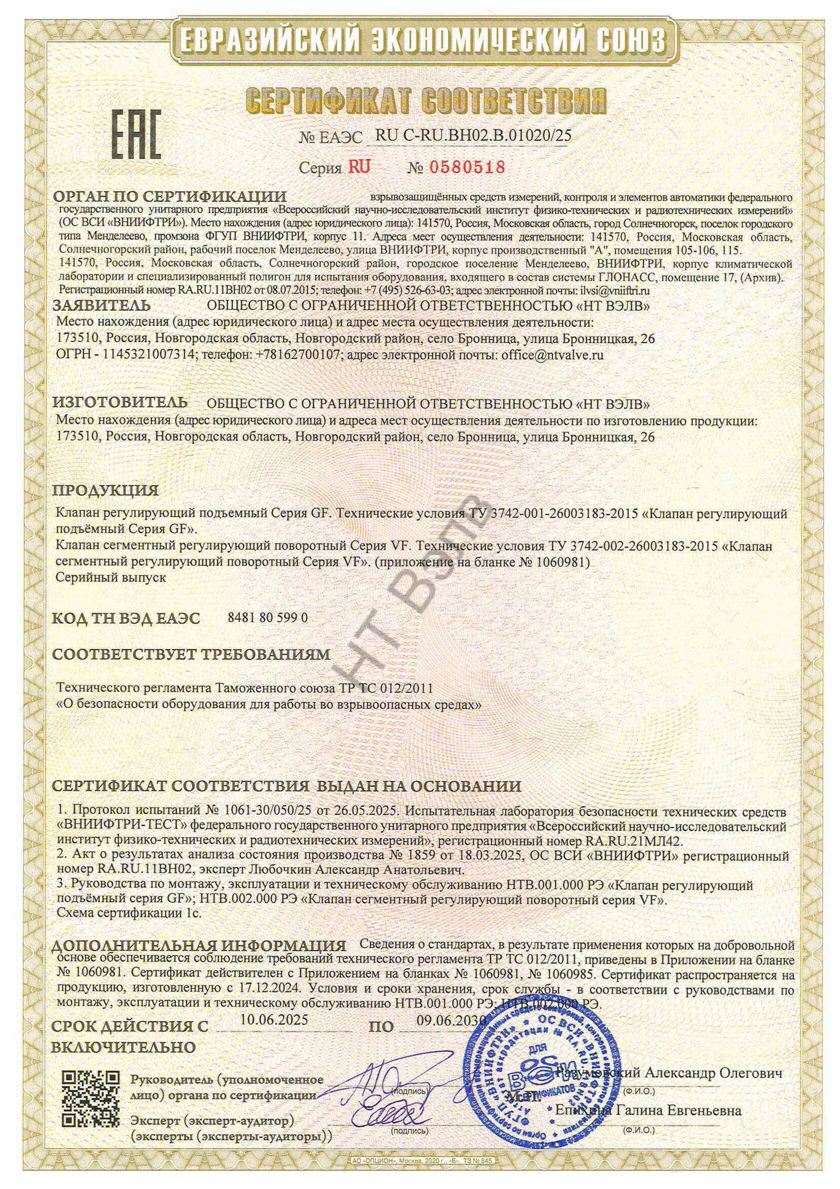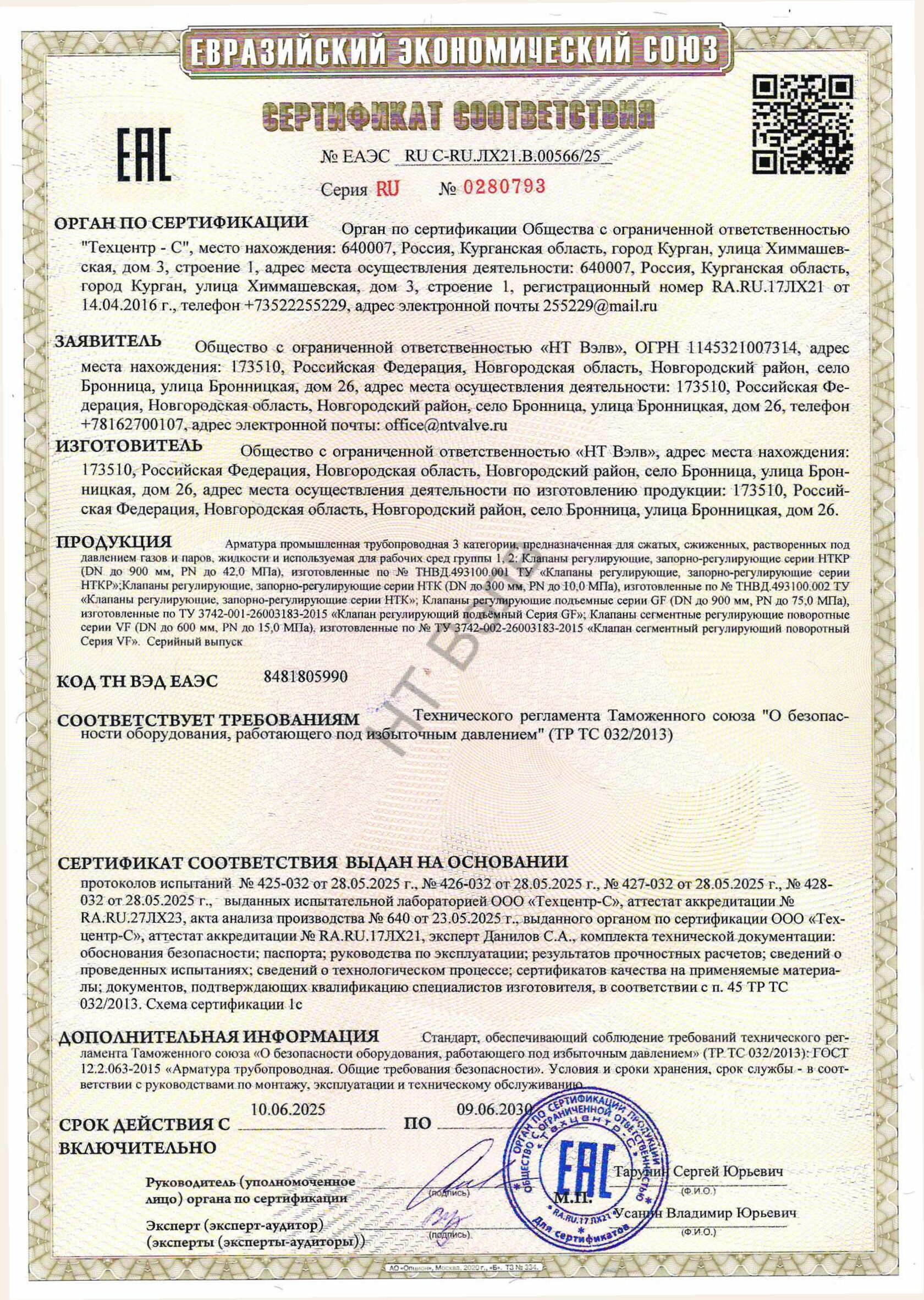 Сертификат соответствия ТР ТС 032 (НТКР, НТК, GF, VF)